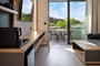 Step onto your private balcony and soak up the Mediterranean sun, or unwind in your plush double bed. A dedicated desk provides a comfortable workspace. Stay connected with Wi-Fi and a TV, ensuring convenience throughout your stay.